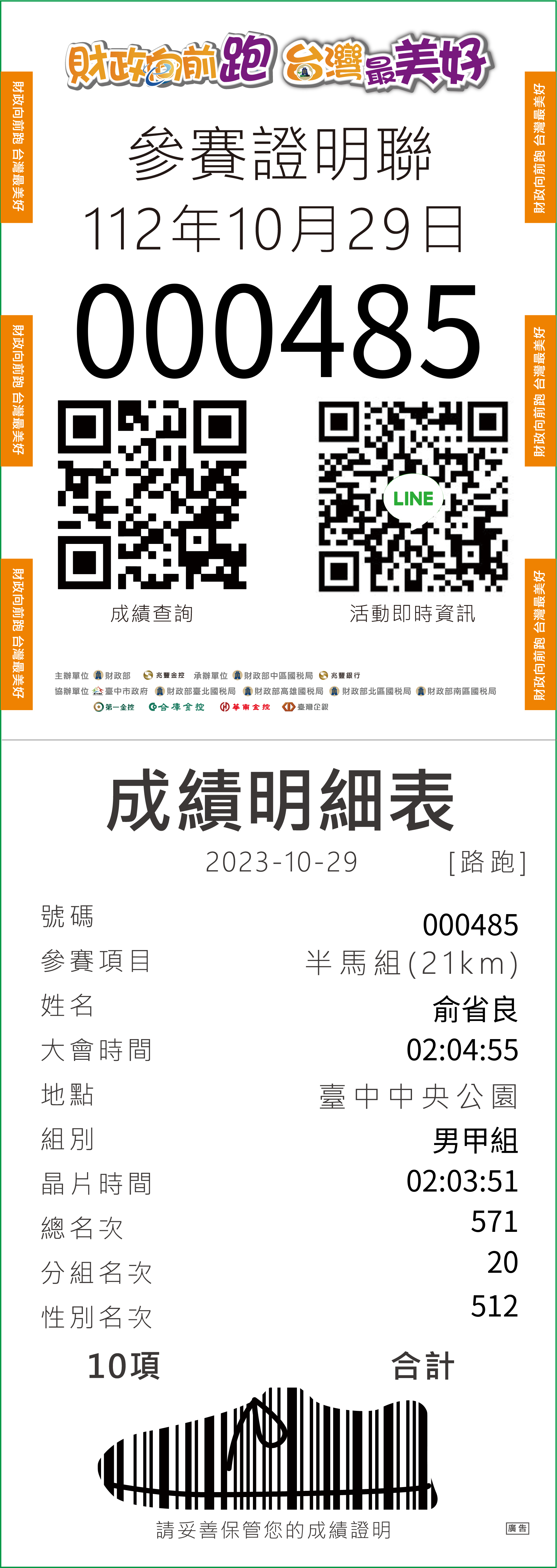 大會成績 Official Time