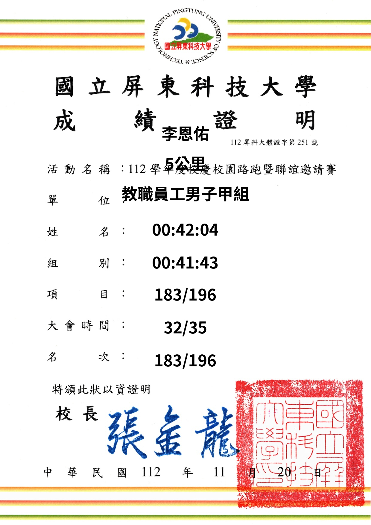 大會成績 Official Time
