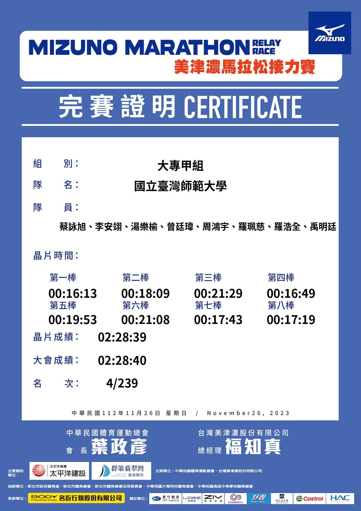 - 即時成績排名僅供參考,正式成績排名應以主辦單位公告為準。