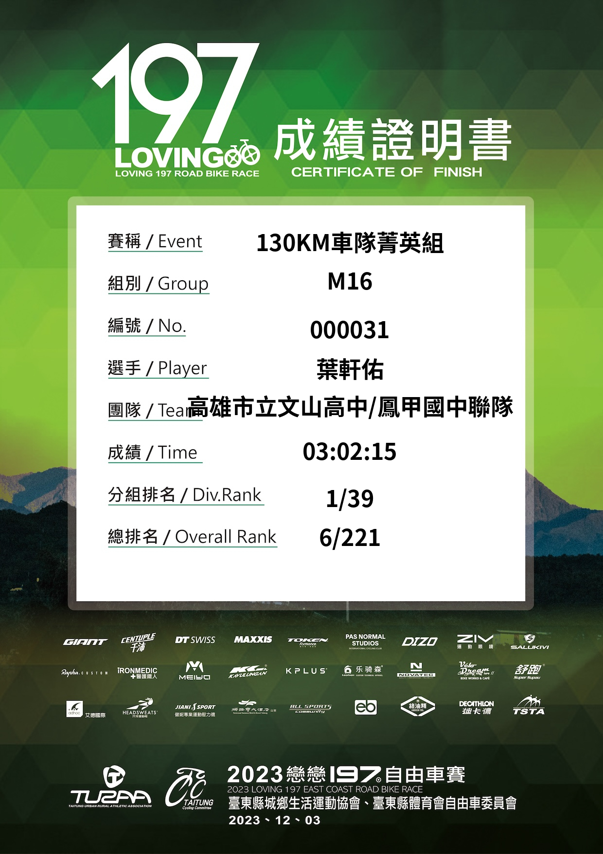 大會成績 Official Time