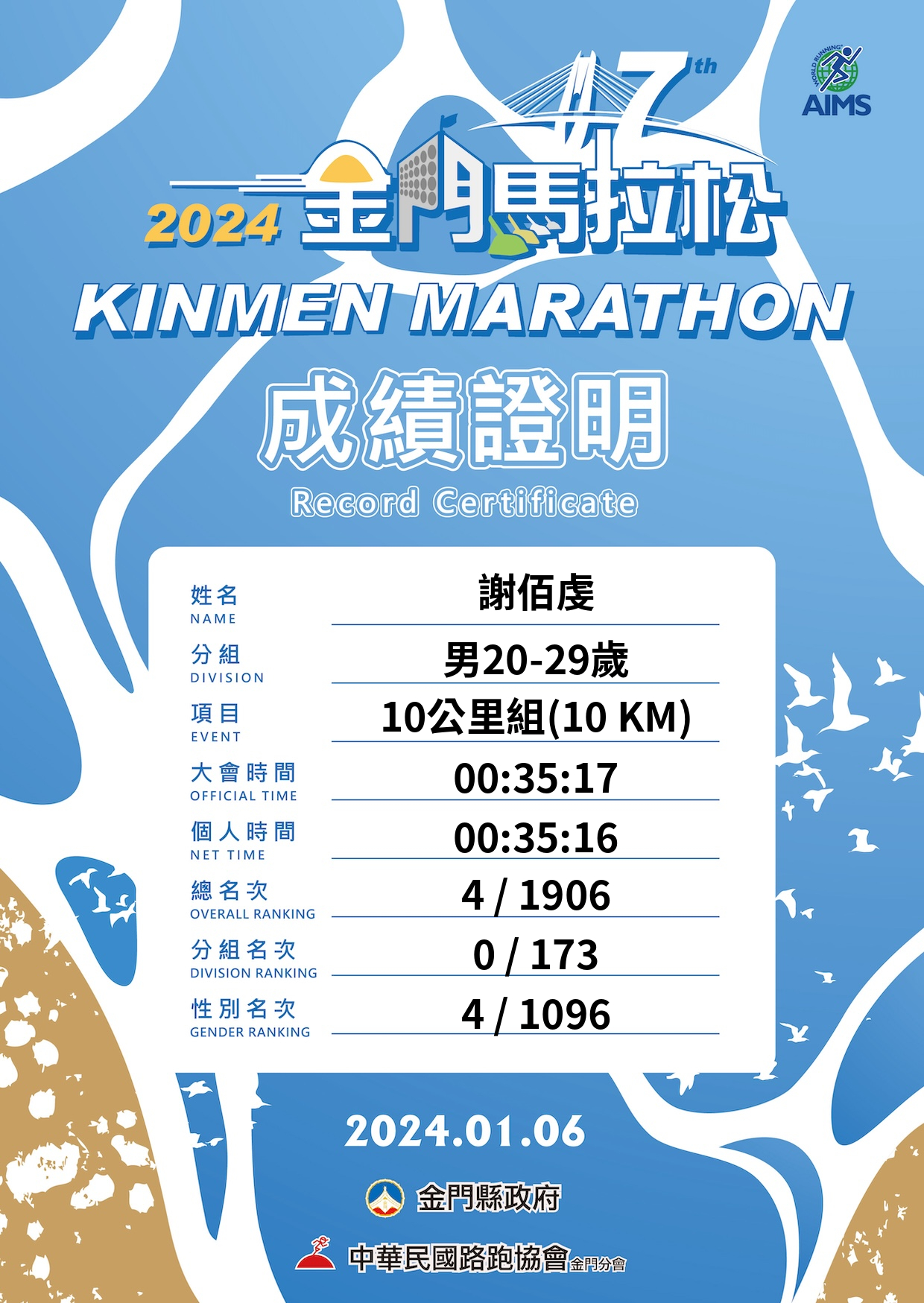大會成績 Official Time