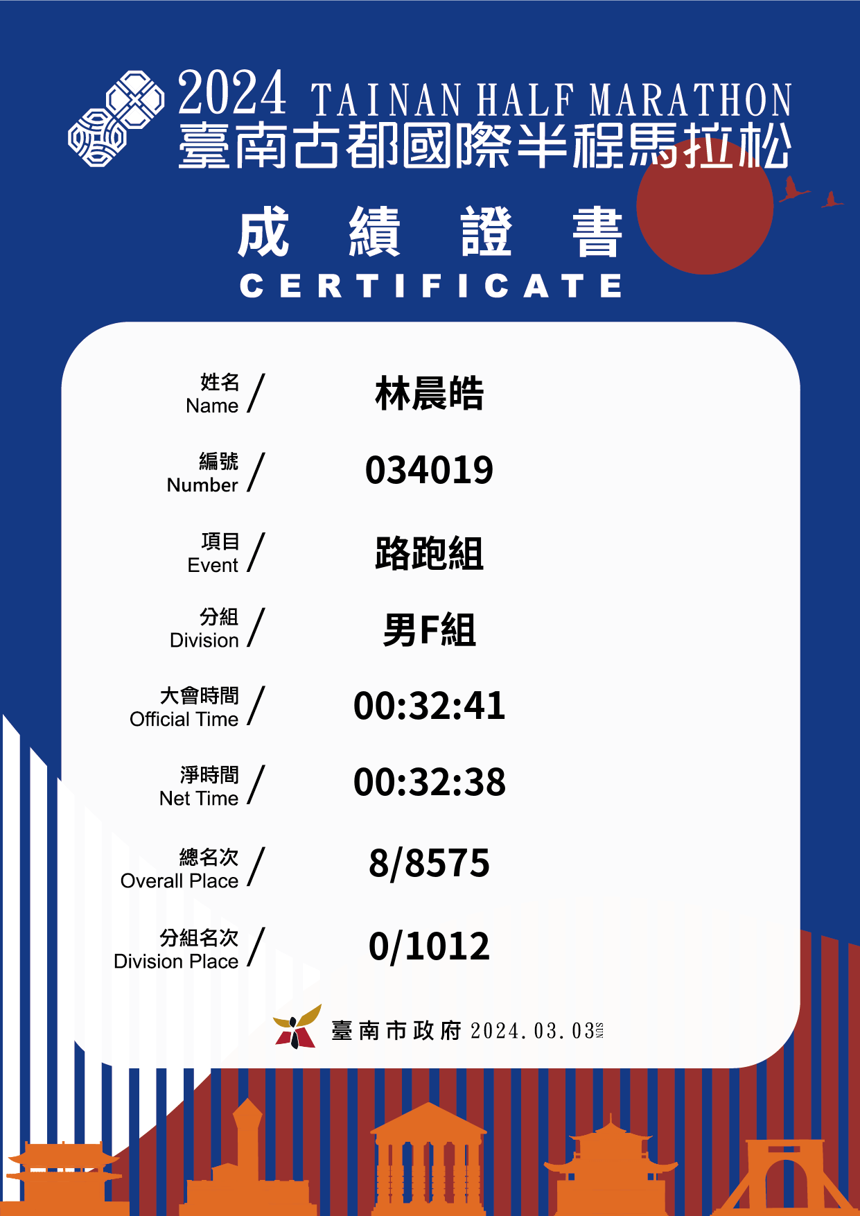 大會成績 Official Time