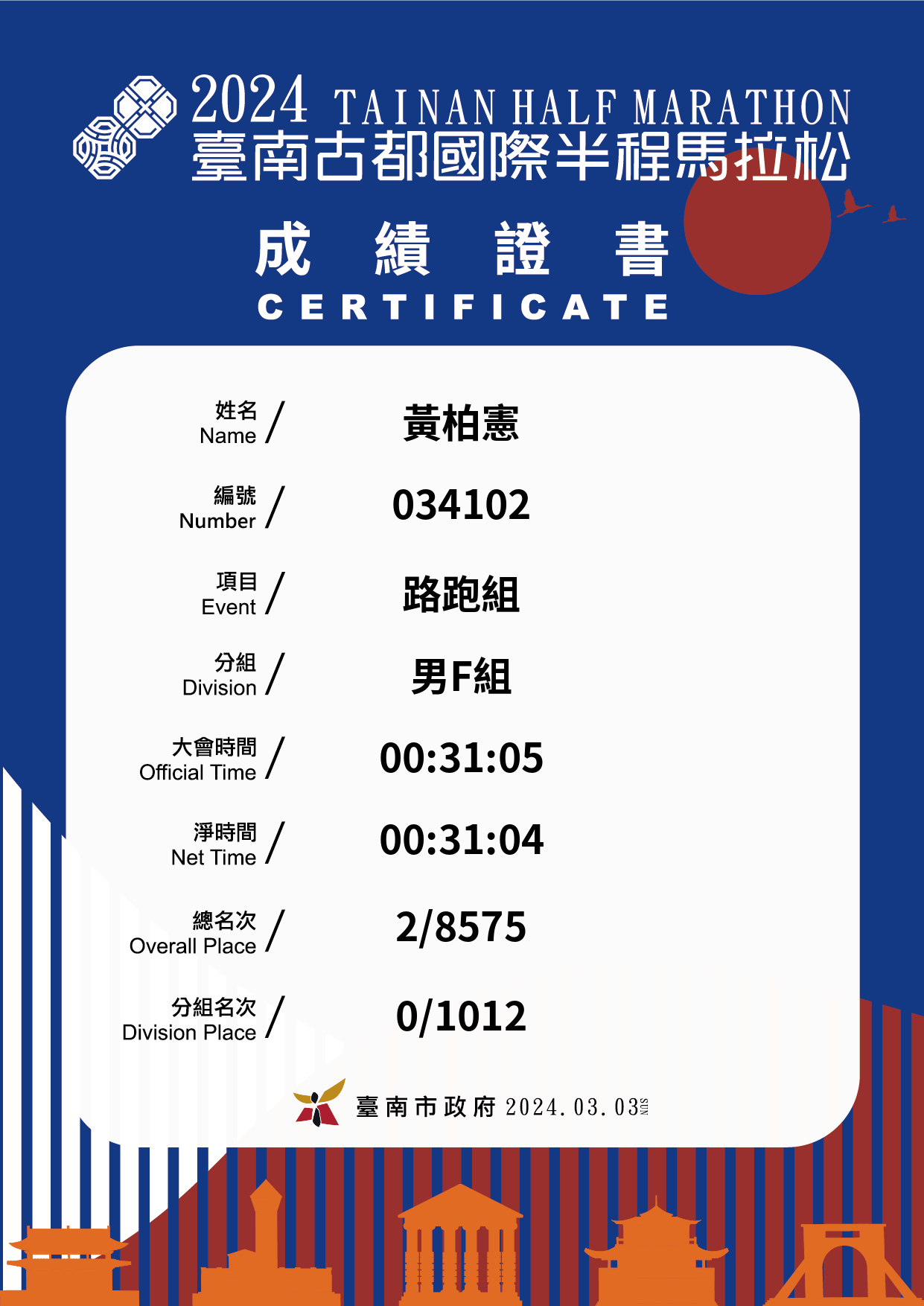 大會成績 Official Time