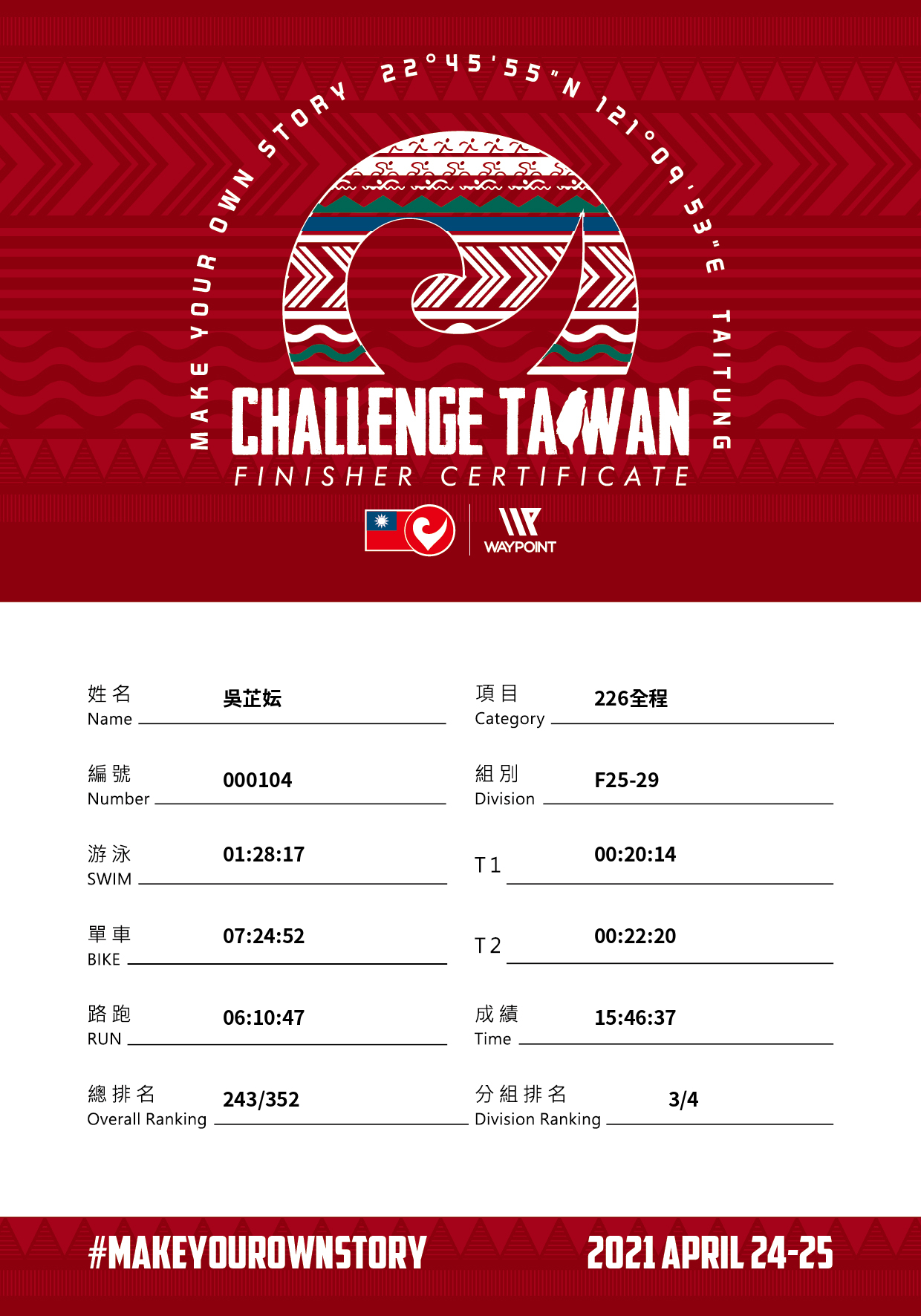 個人成績 Net Time