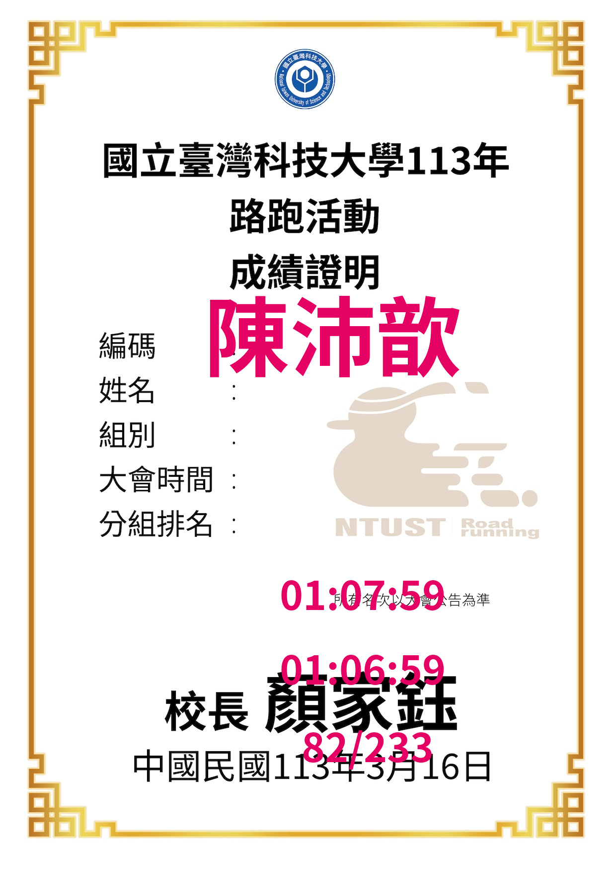 大會成績 Official Time