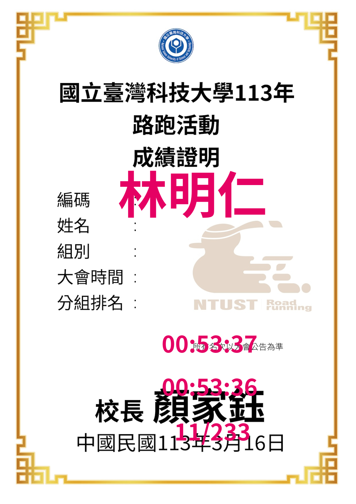 大會成績 Official Time