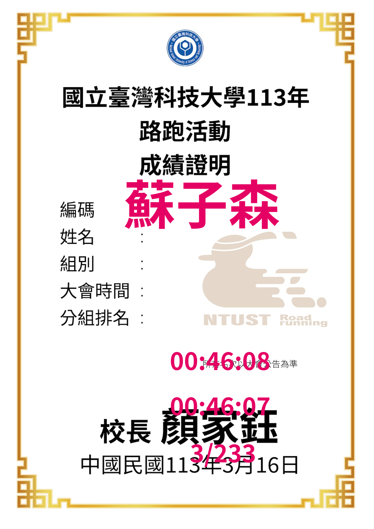 大會成績 Official Time