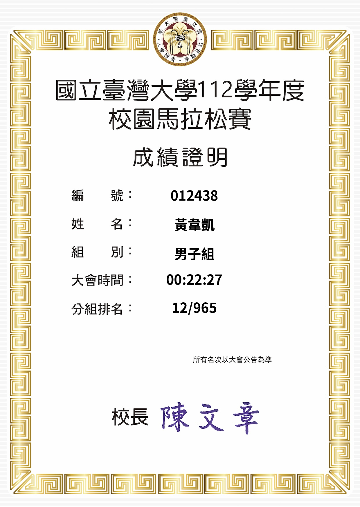 大會成績 Official Time