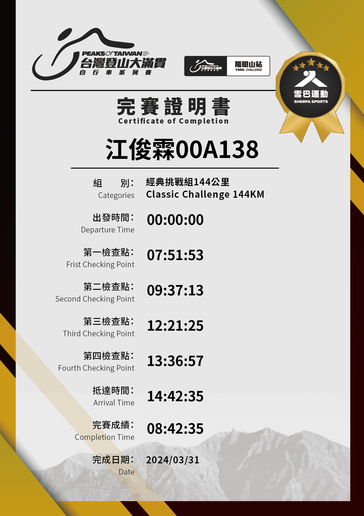 經典挑戰組144KM