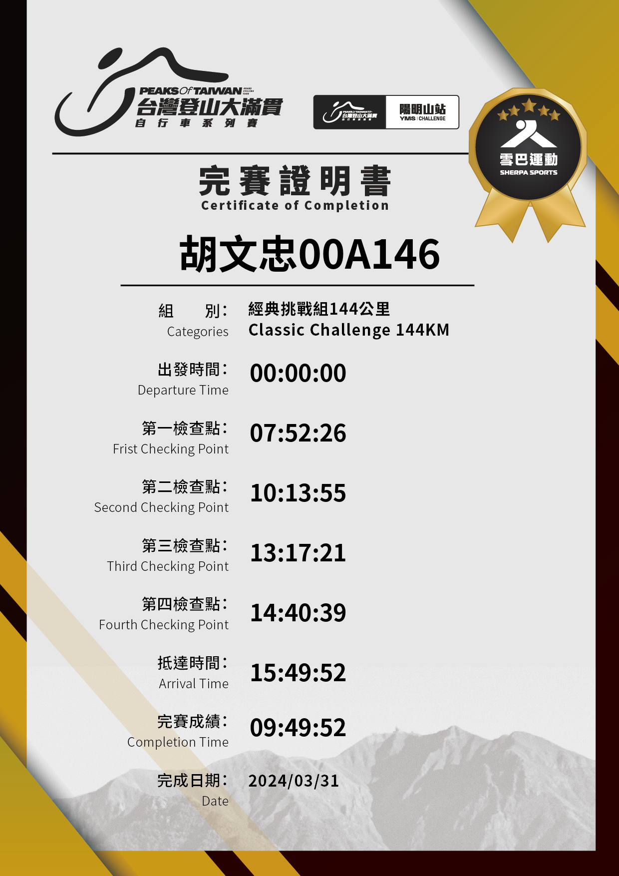 經典挑戰組144KM