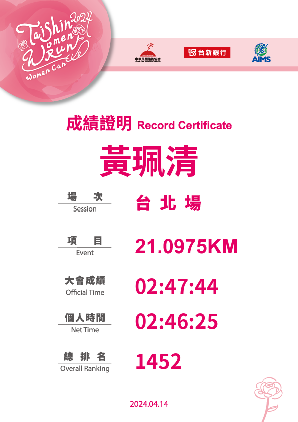 大會成績 Official Time