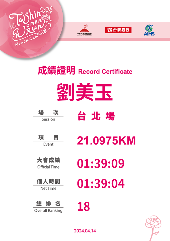大會成績 Official Time