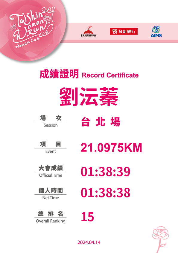 大會成績 Official Time