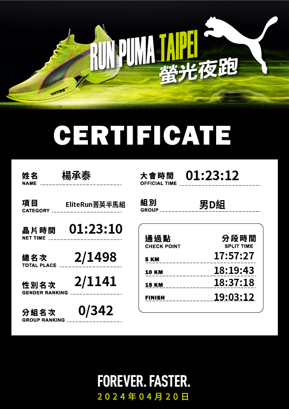 大會成績 Official Time
