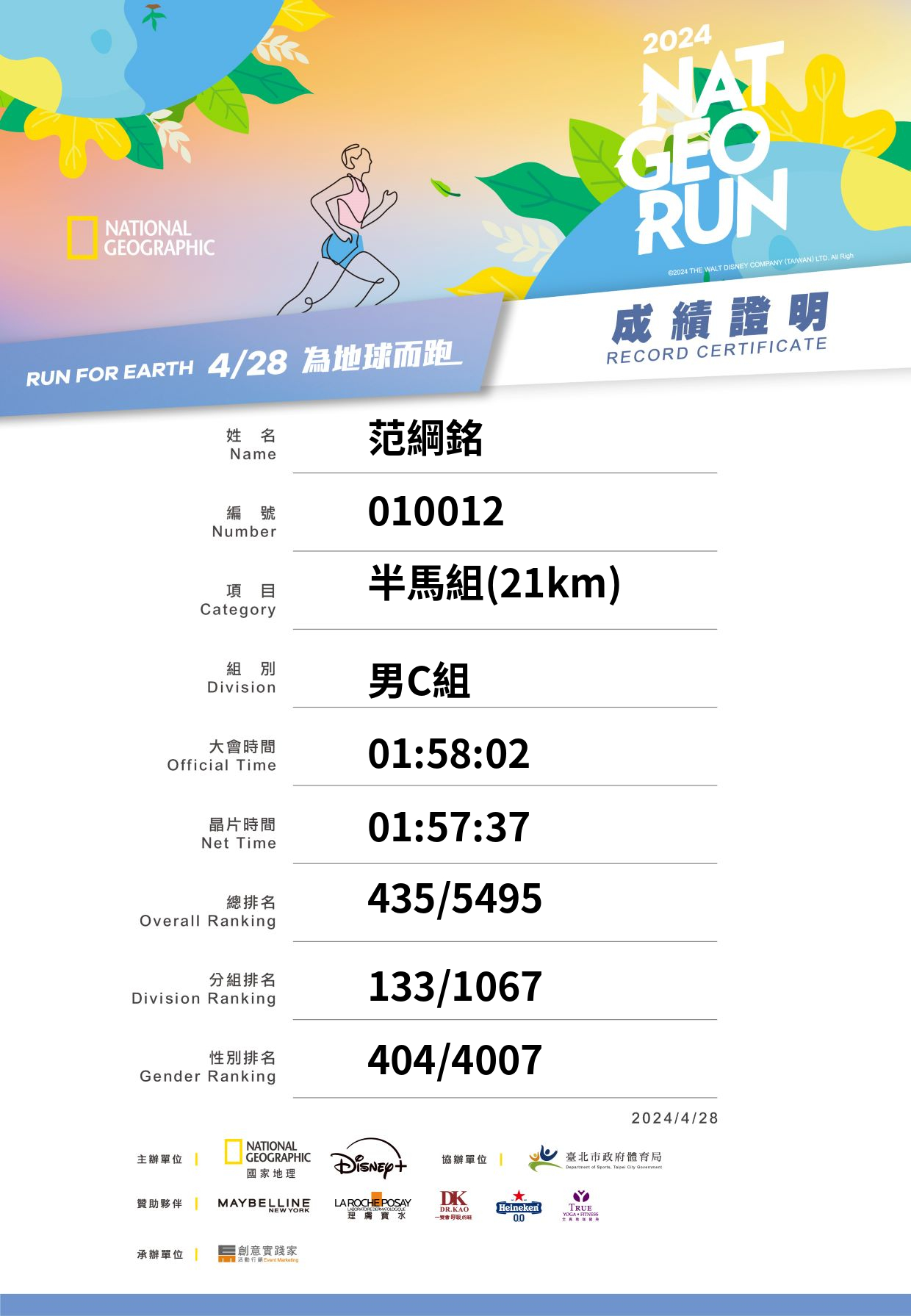 大會成績 Official Time