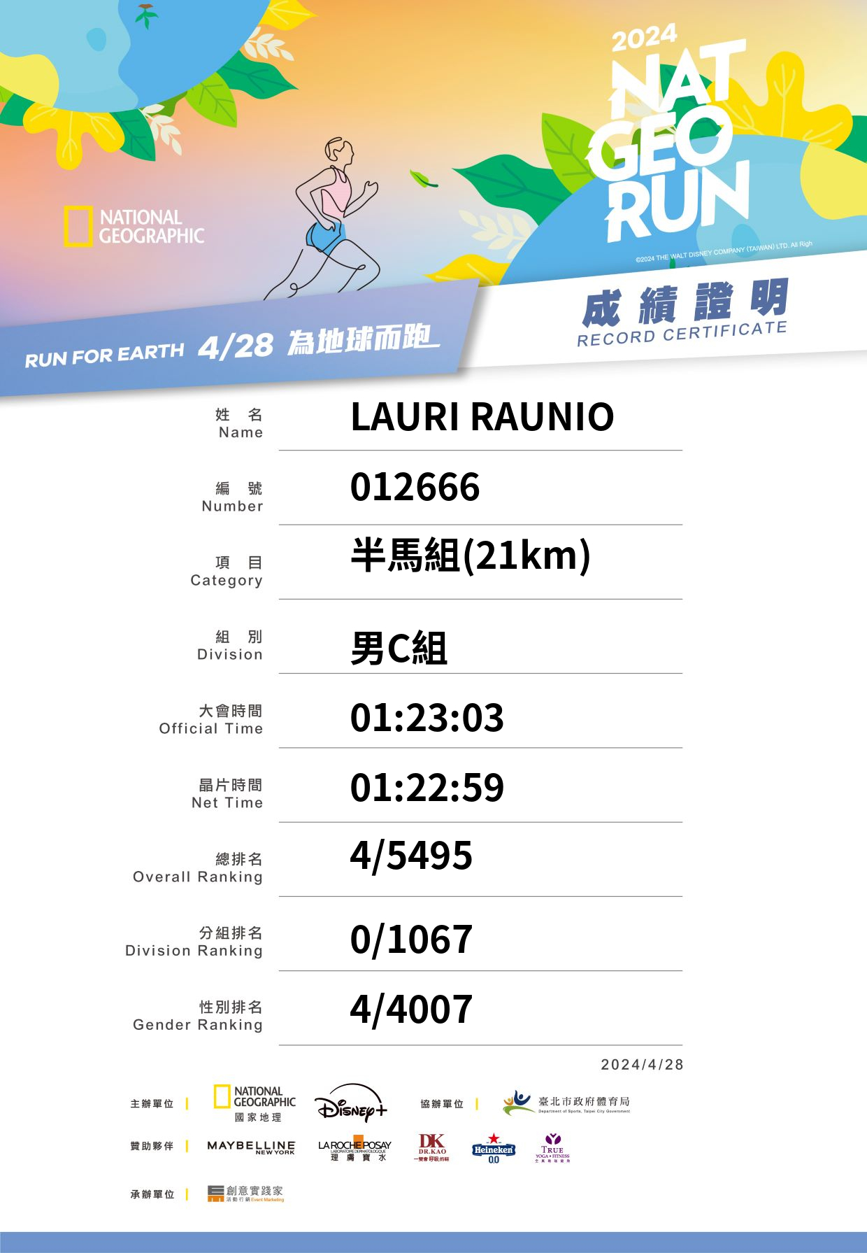 大會成績 Official Time