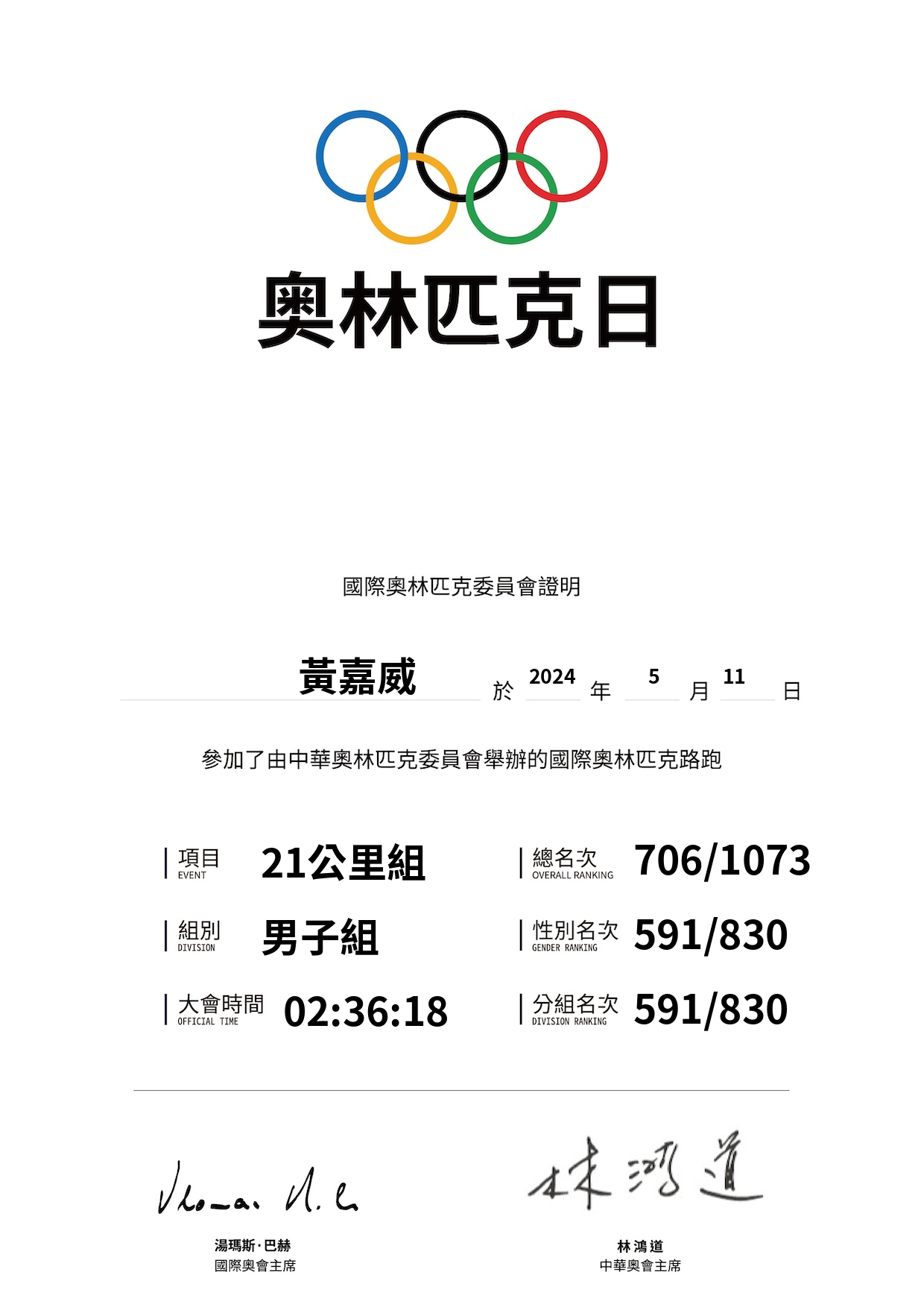 大會成績 Official Time