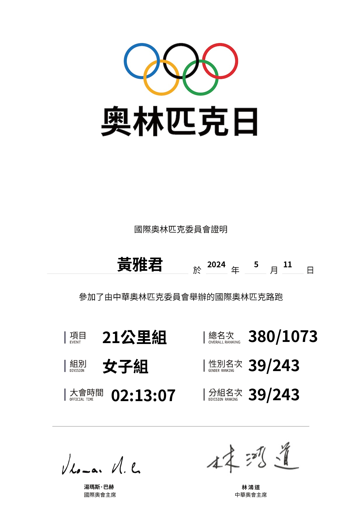 大會成績 Official Time