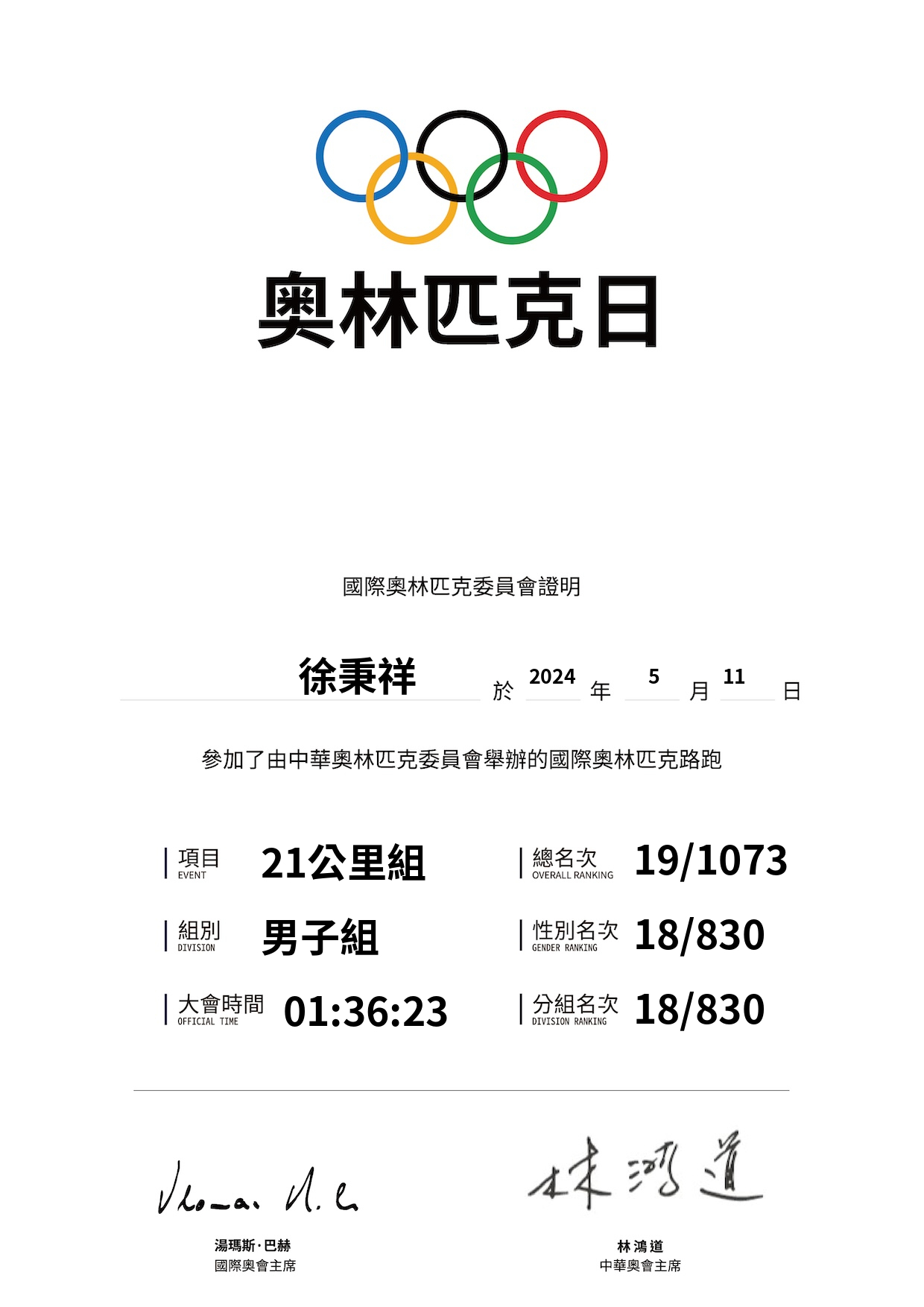 大會成績 Official Time