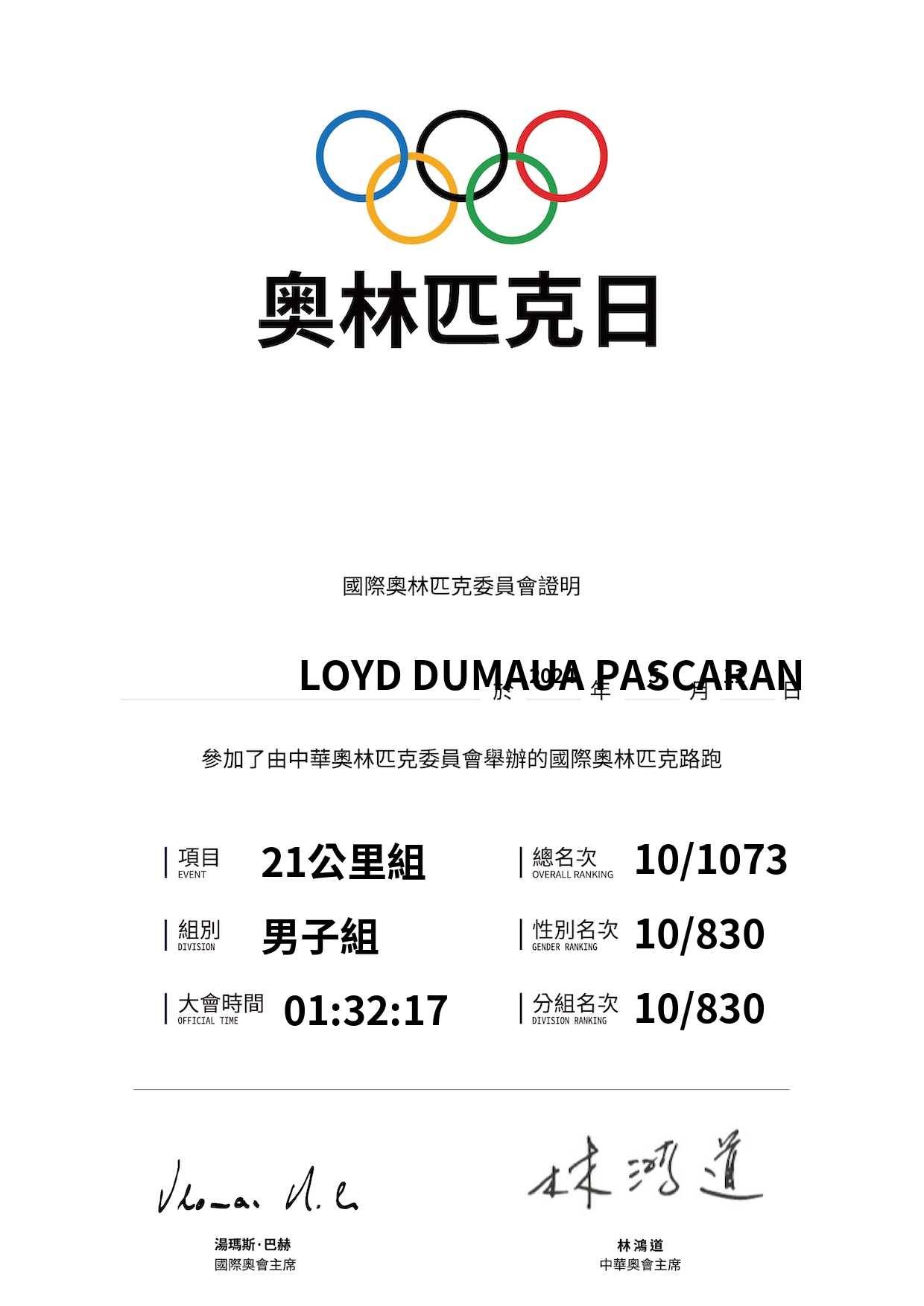 大會成績 Official Time