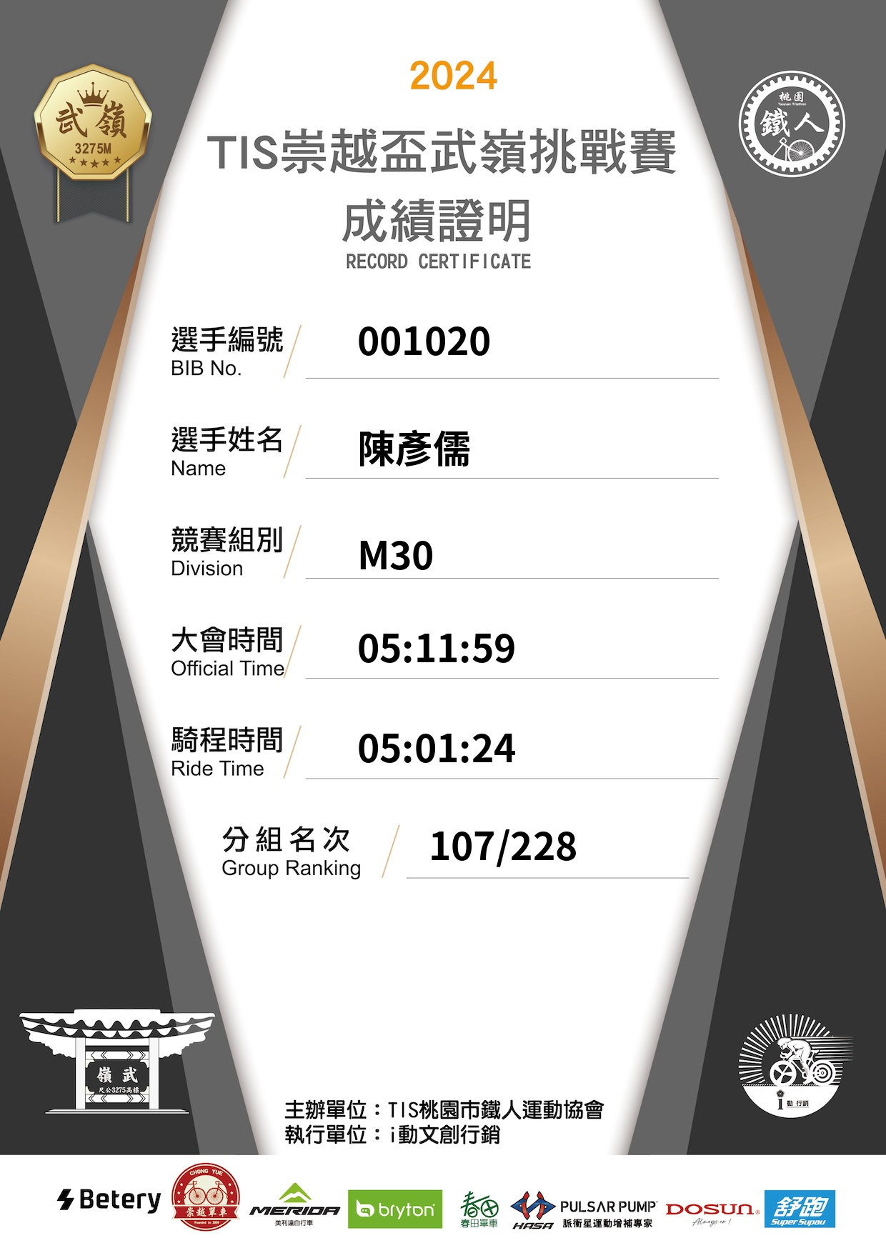 大會成績 Official Time