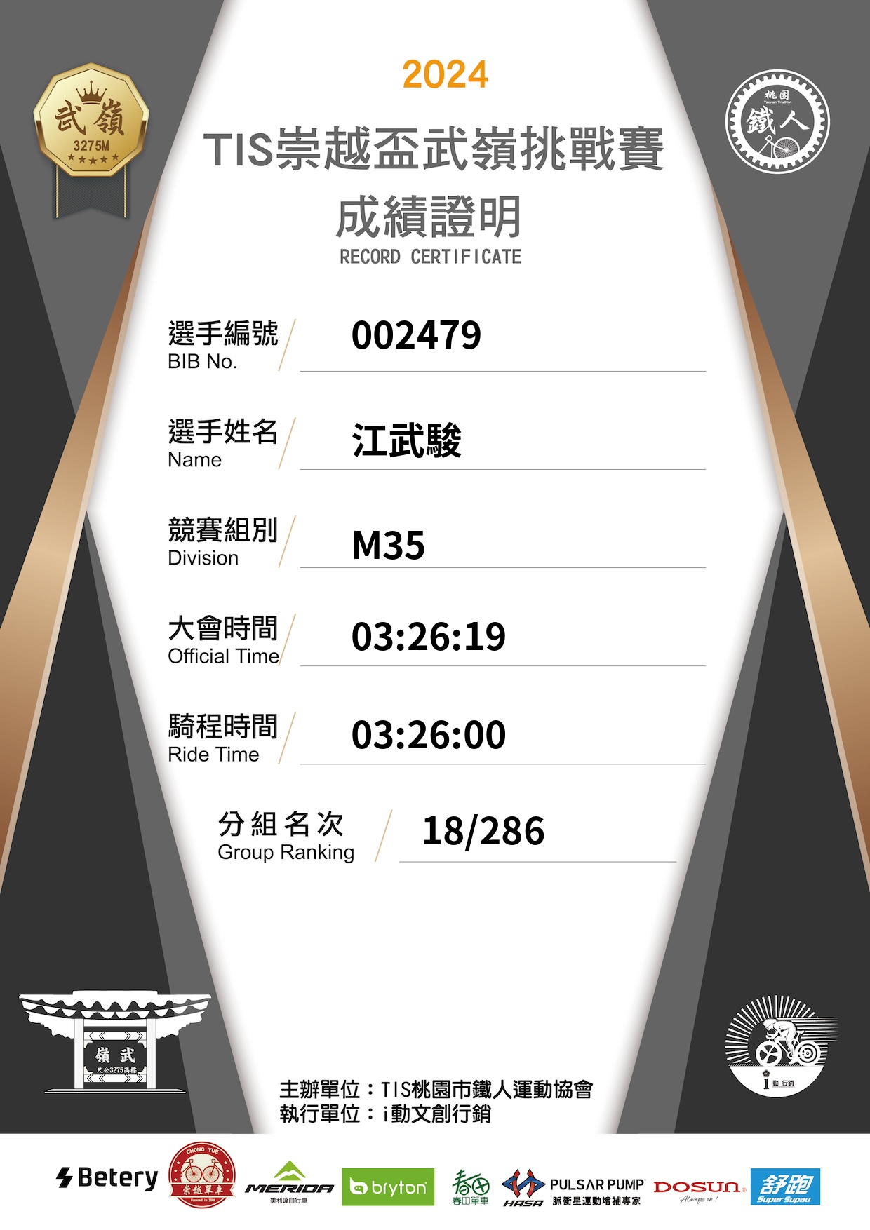 大會成績 Official Time
